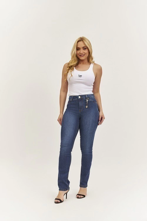 Calça Jeans Tradicional Reta Básica com Lycra, apresenta uma modelagem de cintura média, quadril, barra e perna Reta. Tem como principal característica ser mais folgada do que o modelo slim e não se ajusta às pernas, acompanhando discretamente a modelagem do corpo. Seu corte simples realça sua autenticidade, permitindo que a peça seja versátil, confortável e com ótimo caimento, é considerada uma calça mais tradicional sem variação no corte, vêm reta desde o quadril até a barra, contendo uma sutil modelagem por conta da Lycra. Possui bolsos frontais não funcionais e traseiros funcionais, cintura média, cós com aplicação de passantes, fechamento frontal em zíper e botão. Sua modelagem na perna propõe um caimento mais suave, proporcionando um visual casual e dependendo da produção até traz mais elegância. Uma peça que nunca sai de moda feito para o dia a dia.